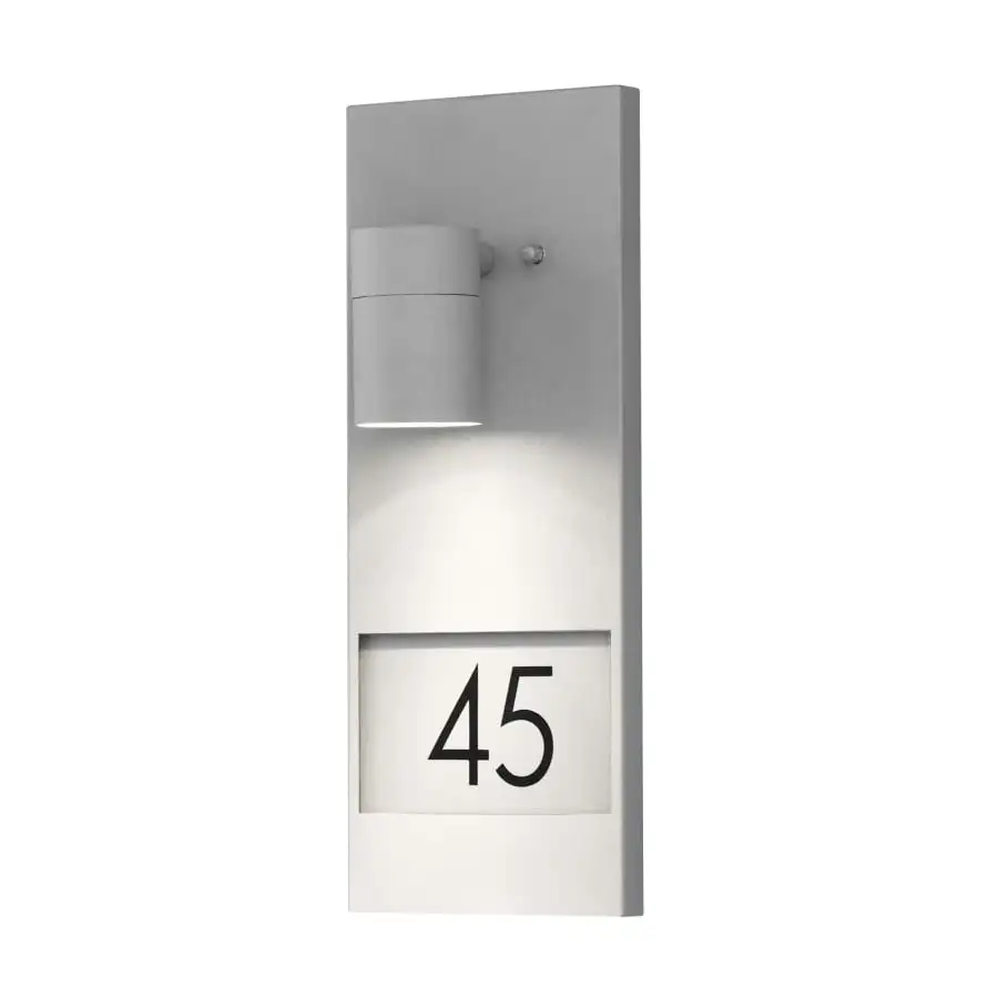 Modena nummerlampa, gråmålad aluminium. Glödlampa med GU10-fot för spotlight, ingår ej Max 35W.