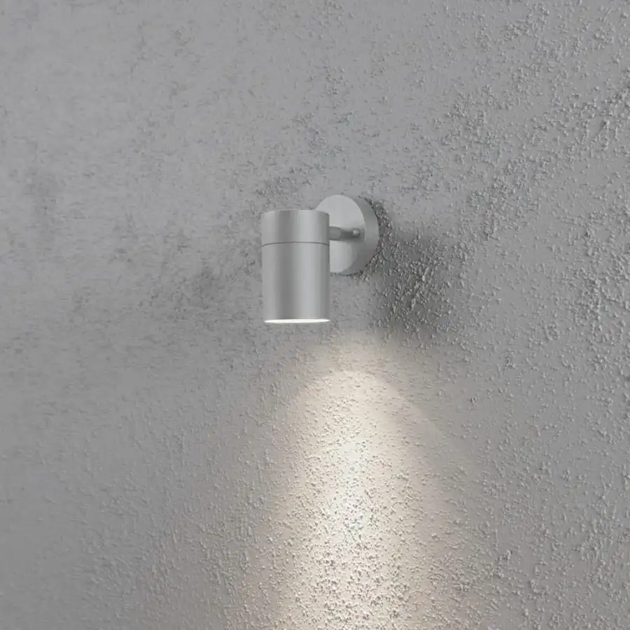 Konstsmide Modena 7657-300 utomhusvägglampa, IP44, längd 13 cm, bredd 7,5 cm, höjd 12 cm, klarglas, aluminiumstomme, kroppsfärg grå, glödlampa GU10 max 1x35W ingår ej, glödlampa max höjd 85 mm, downlight, för yta kabelfäste 449-250/750 kan beställas separat
