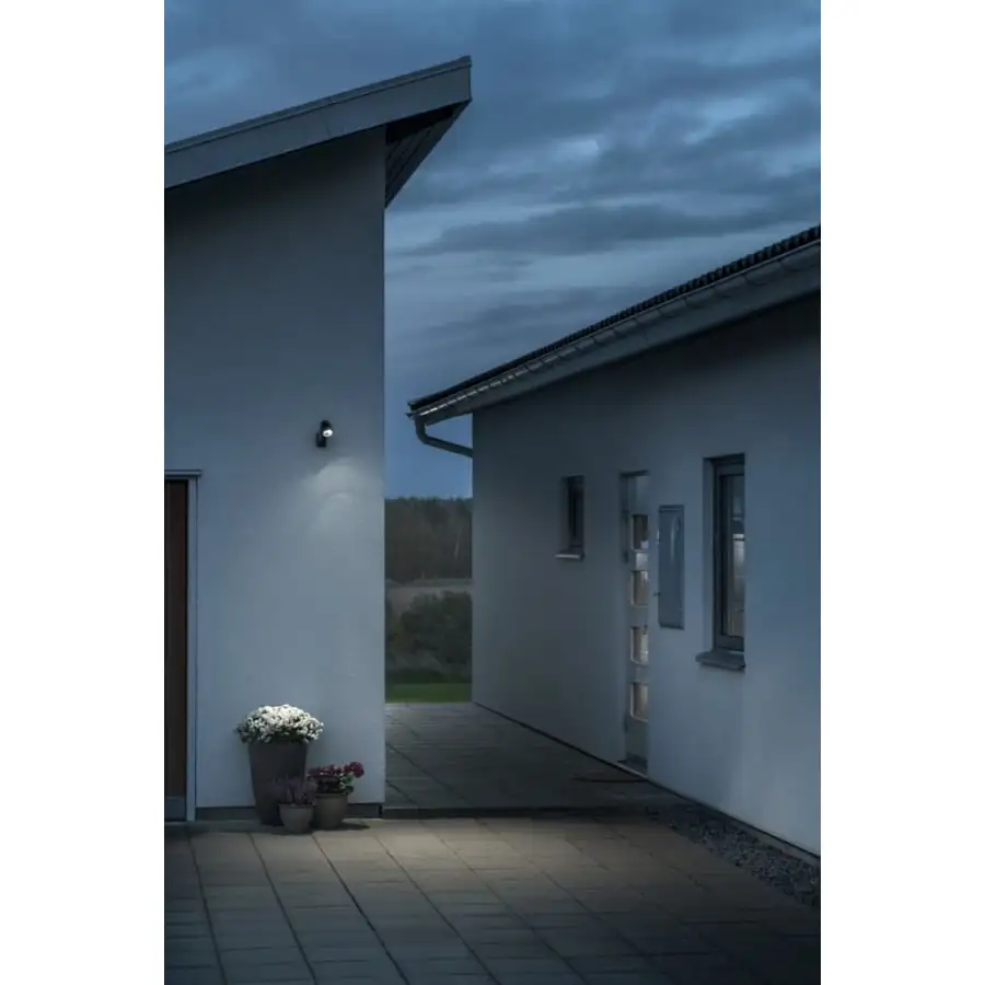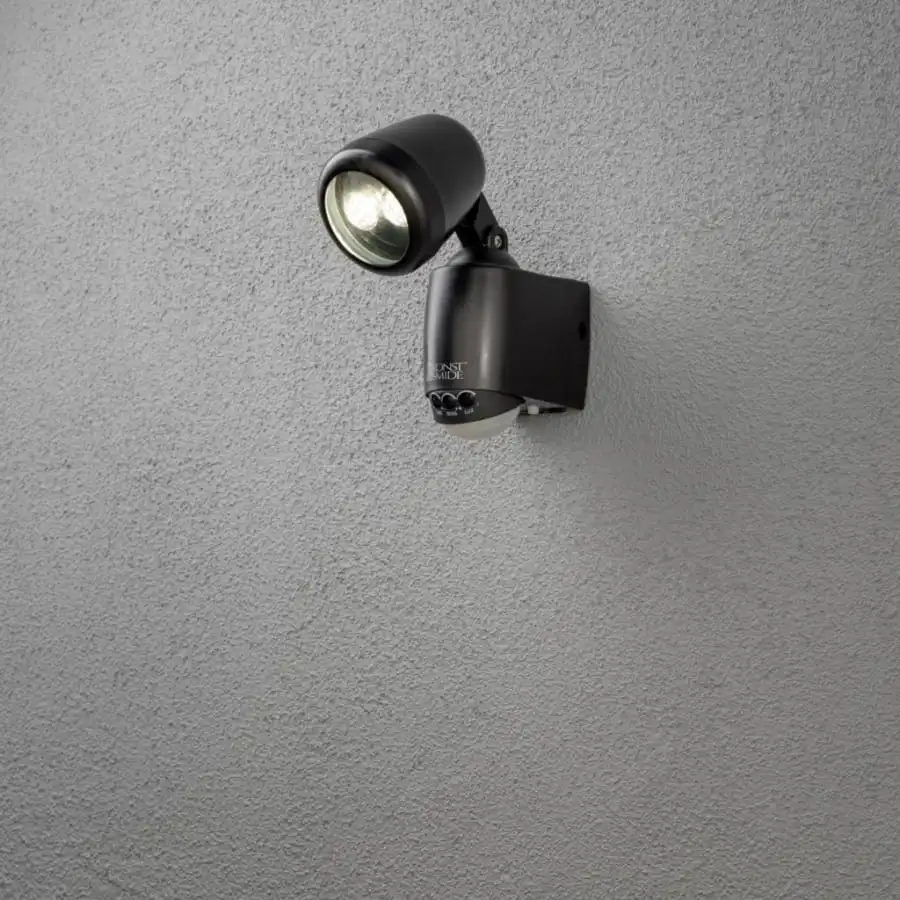 Konstsmide Prato 7693-750 utomhusvägglampa, IP44, längd 6,5 cm, bredd 14 cm, höjd 20,5 cm, klar akryl, kroppsplast, kroppsfärg svart, 100lm, 3500K, fast LED 2×0,5W, 5 st LR6/AA batterier ej ingår, rörelsesensor