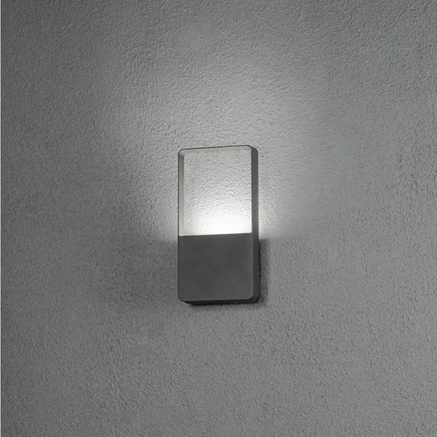 Konstsmide Matera 7850-370 vägglampa utomhus, IP54, längd 5,5 cm, bredd 12,5 cm, höjd 24,50 cm, frostad akryl, ram aluminium, ramfärg mörkgrå, 400lm, fast LED 1x6W, 3000K