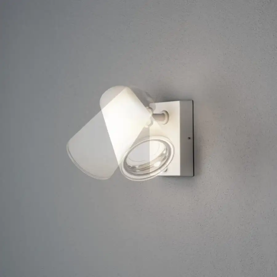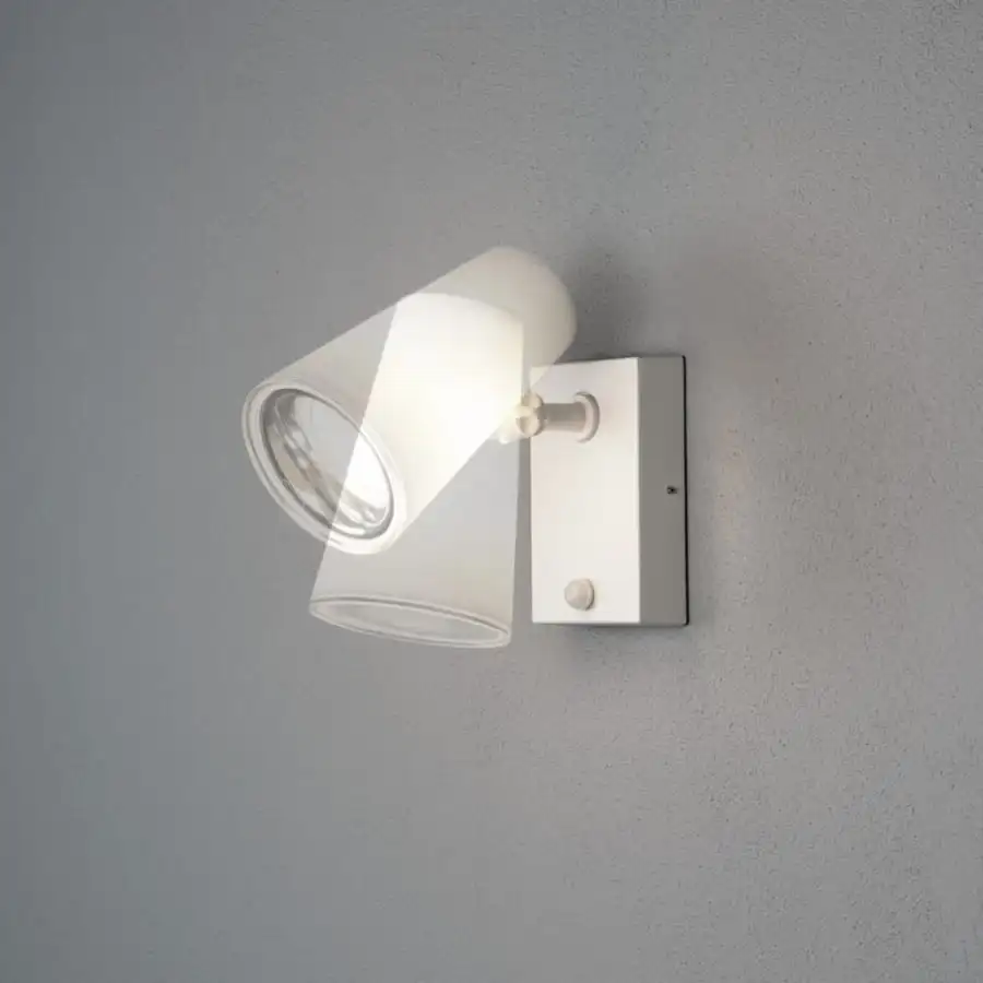 Konstsmide Fano 7873-250 outdoor wall lamp, IP54, length 21 cm, width 18 cm, height 12 cm, opal acrylic, aluminum body, body color white, bulb E27 max 1x25W not included, bulb max height 125 mm, motion detector, can be chained, surface installation possible
