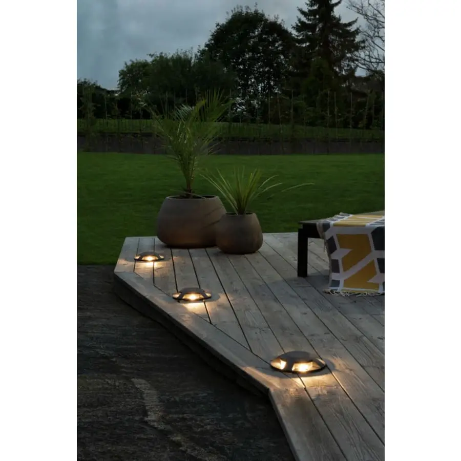 Konstsmide Groundspot 7878-370 terrass/marklampa, IP65, längd 20 cm, bredd 20 cm, höjd 4,2 cm, klar akryl, kropp aluminium, kroppsfärg mörkgrå, 980lm, fast LED 4x3W, 3000K, kan kedjas