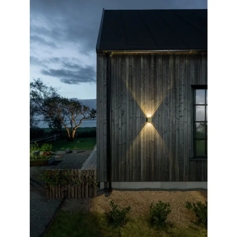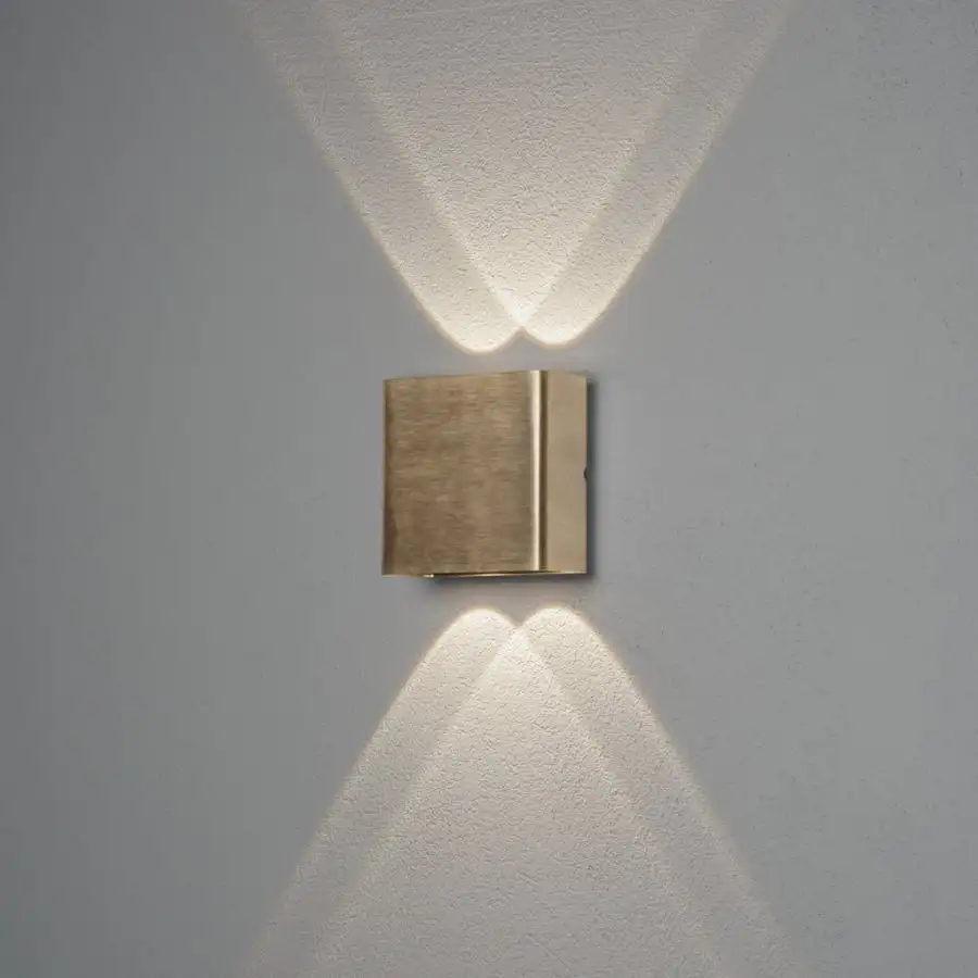 Konstsmide Chieri 7891-800 utomhusvägglampa, IP54, längd 6 cm, bredd 11 cm, höjd 11 cm, klarglas, kroppsmässing, kroppsfärg mässing, 400lm, fast LED 4x1W, 3000K, upp- och nedljus, kan kedjas, tryck in anslutningsdosa , kan utanpåliggande monteras
