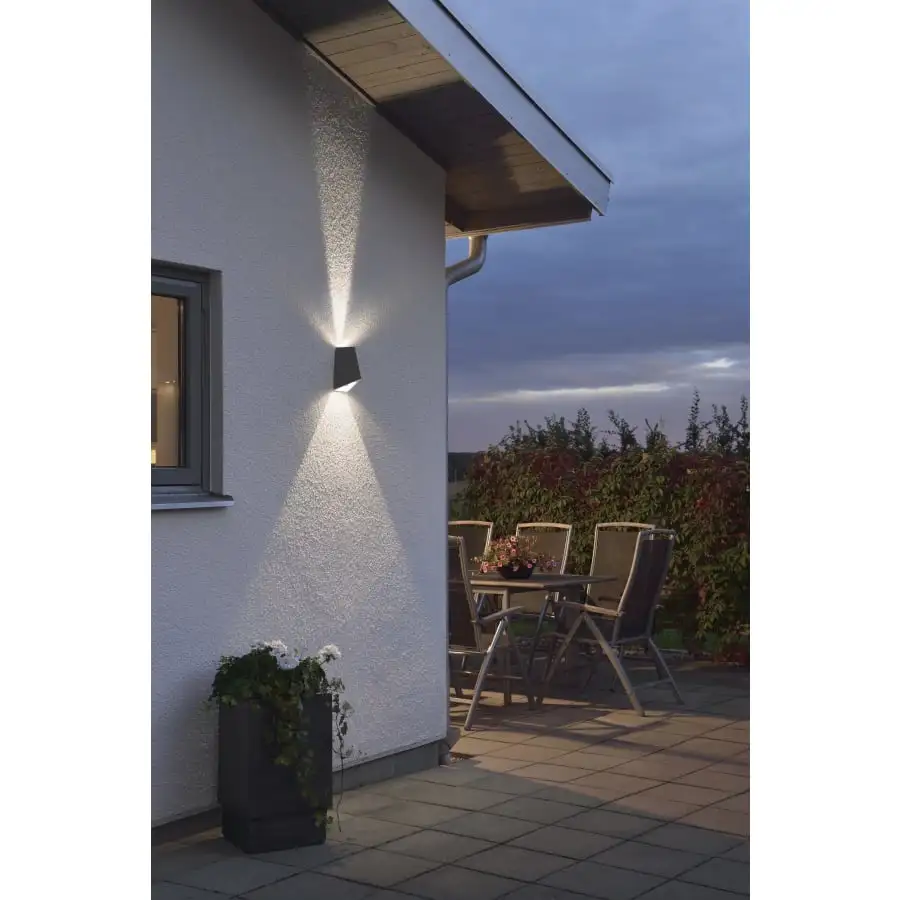 Imola LED wall lamp, anthracite-colored aluminum. 2 x 4W LED module, illuminates wide down, narrow up.