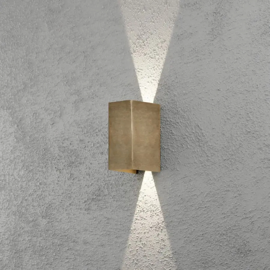 Konstsmide Cremona 7940-800 outdoor wall lamp, IP54, length 11 cm, width 8 cm, height 17 cm, clear glass, body brass, body color brass, 600lm, fixed LED 2x3W, 3000K, up-down light, adjustable light opening angle between 0-90 degrees