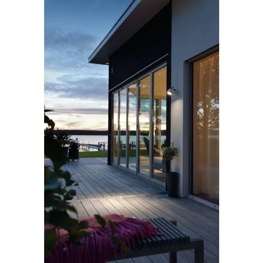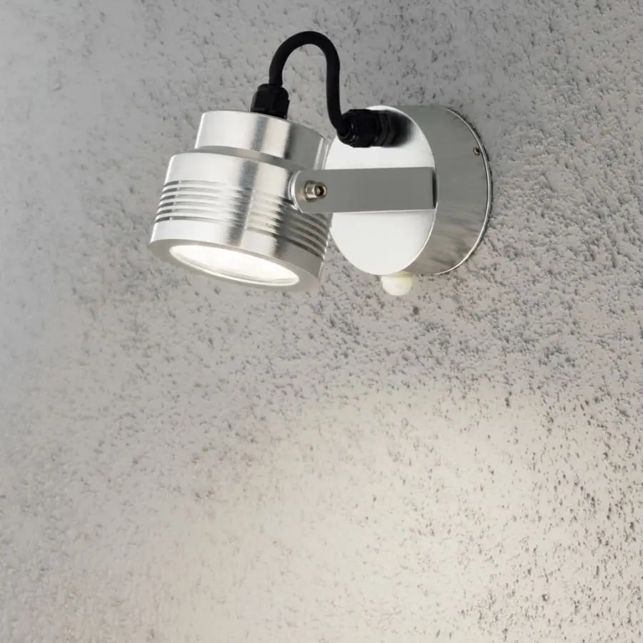 Konstsmide Monza 7942-310 outdoor wall lamp, IP54, length 18.5 cm, width 9.5 cm, height 10.5 cm, clear glass, frame aluminum, frame color aluminum, 480lm, fixed LED 6x1W, 3000K, motion sensor