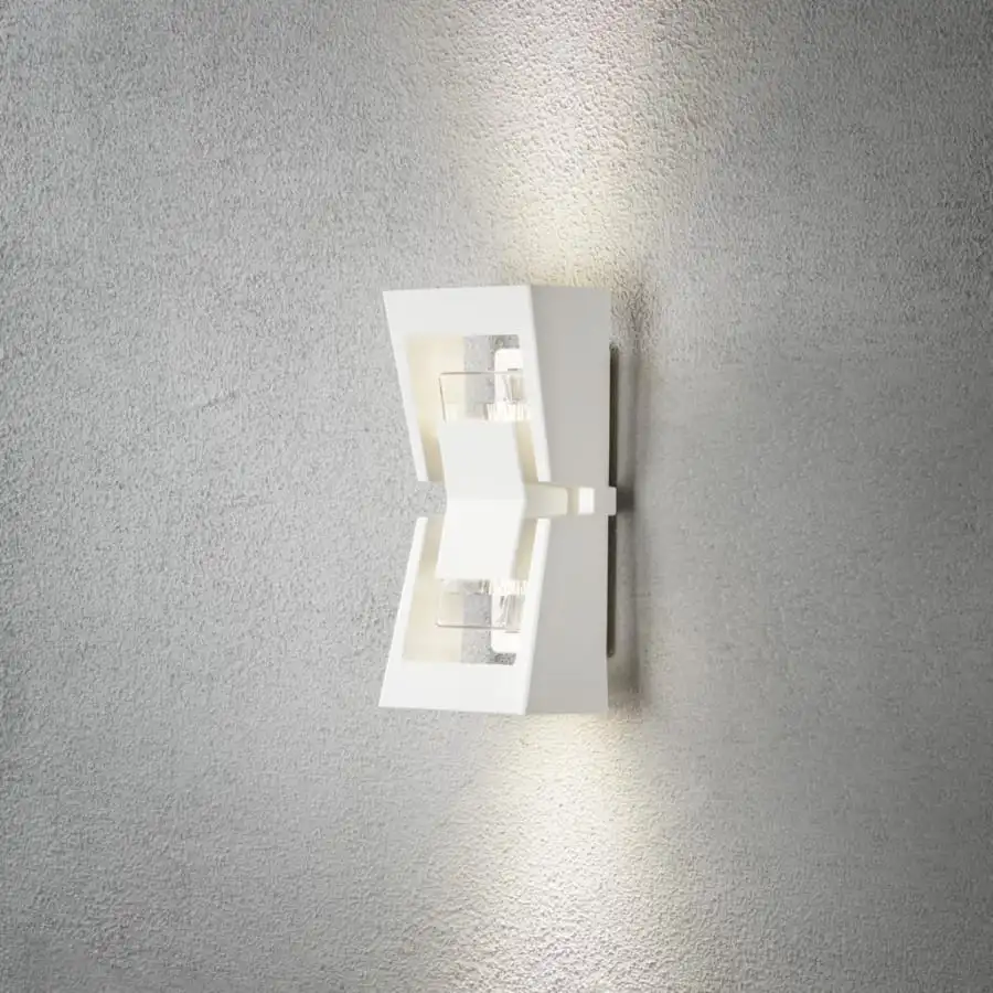 Konstsmide Potenza 7955-250 outdoor wall lamp, IP54, length 13 cm, width 12 cm, height 30 cm, clear acrylic, aluminum body, body color white, bulb GU10 max 2x6W not included, bulb max height 70 mm, up-down light, easy to install , easy to change the bulb