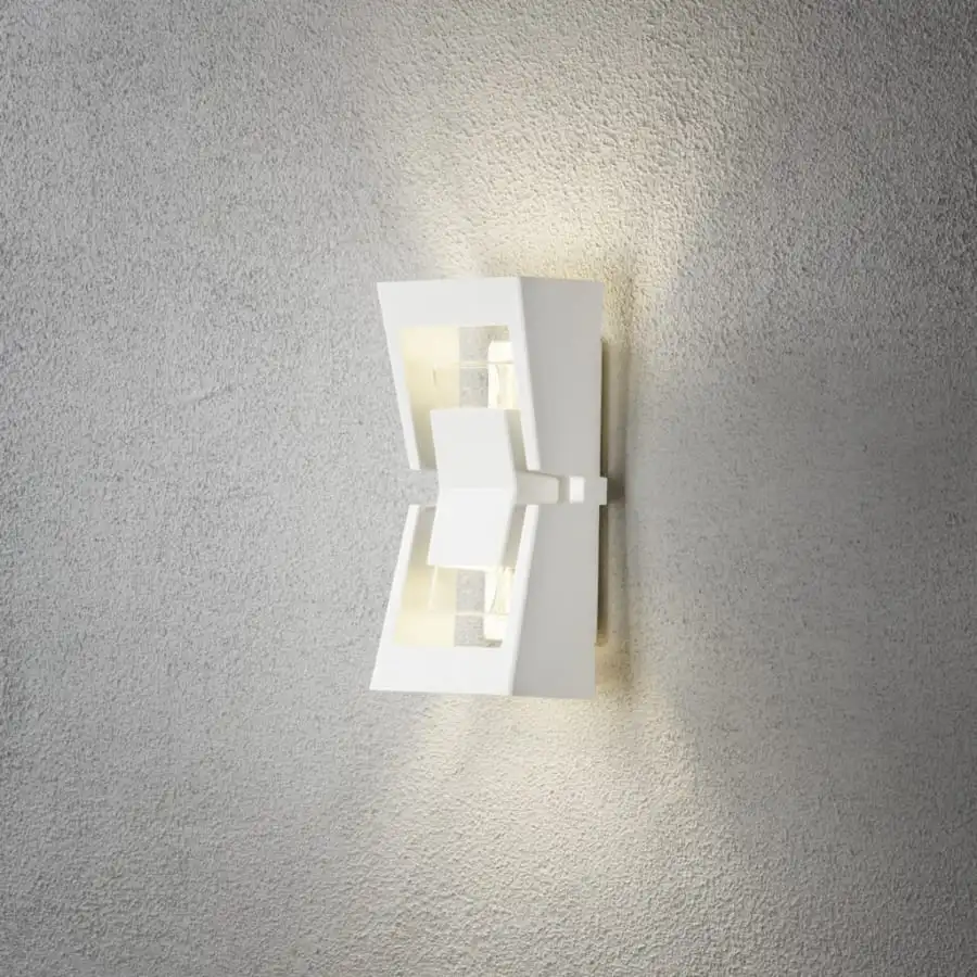 Konstsmide Potenza 7971-250 utomhusvägglampa, IP54, längd 13 cm, bredd 12 cm, höjd 30 cm, klar akryl, aluminiumstomme, kroppsfärg vit, 700lm, utbytbar LED 2x4W, 3000K, lämplig för dimning, lätt att installera