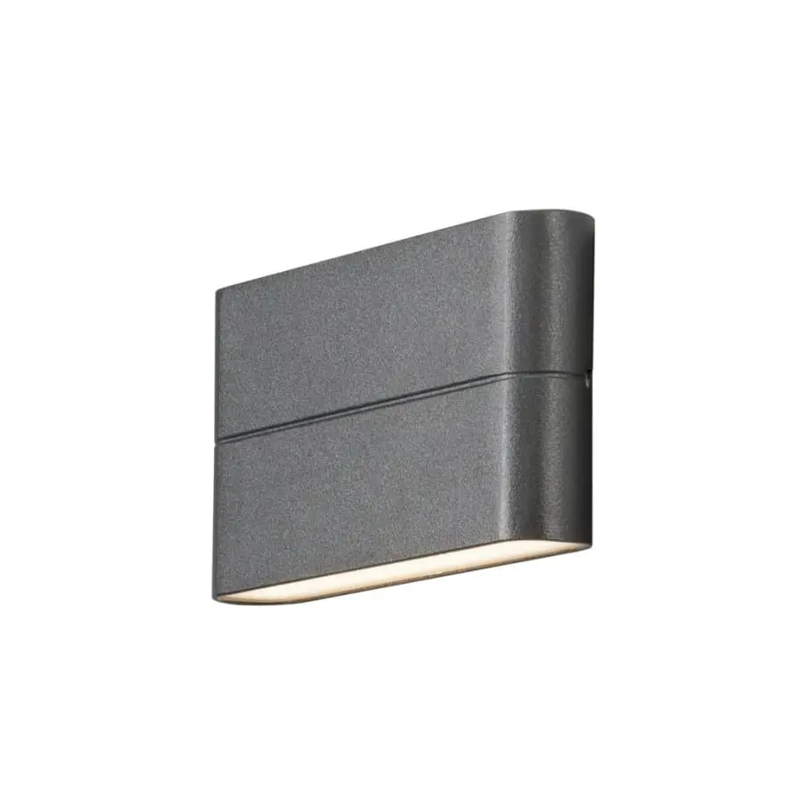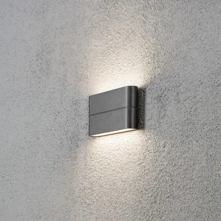 Konstsmide Chieri 7973-370 utomhusvägglampa, IP54, längd 3 cm, bredd 17 cm, höjd 9 cm, opal akryl, ram aluminium, ramfärg mörkgrå, 950lm, fast LED 2x6W, 3000K, up-down ljus