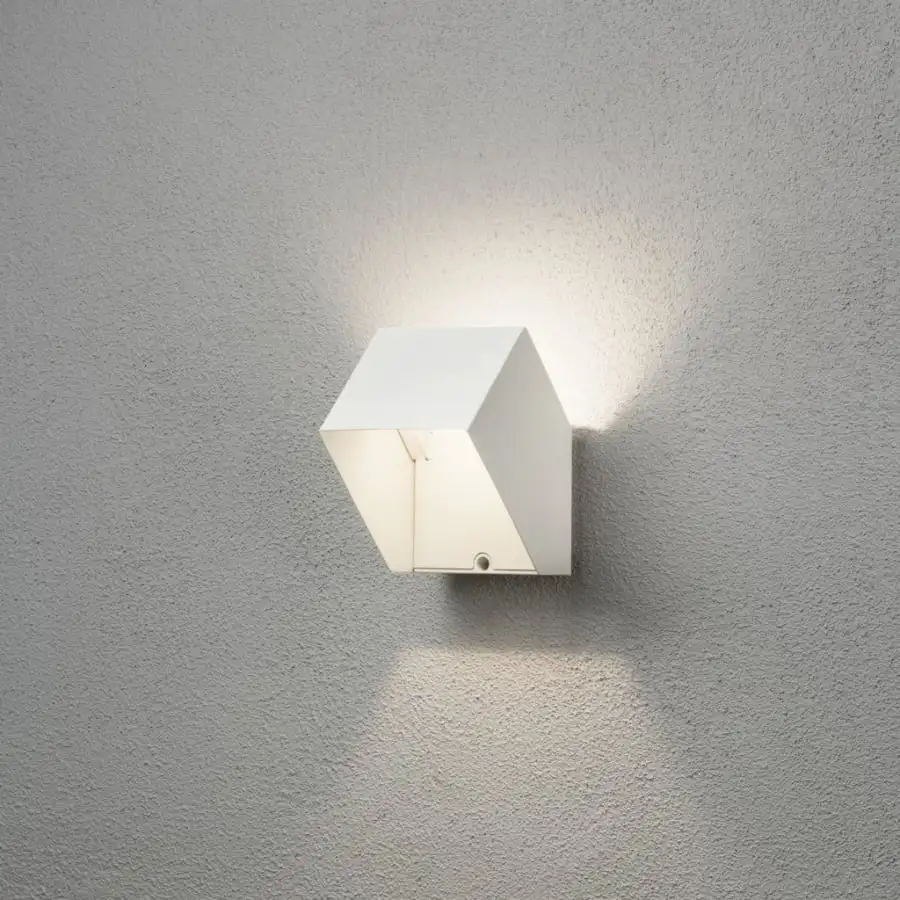 Konstsmide Pescara 7988-250 outdoor wall lamp, IP54, length 18 cm, width 13.5 cm, height 19 cm, frosted acrylic, body aluminum, body color white, 300lm, fixed LED 1x3W, 3000K