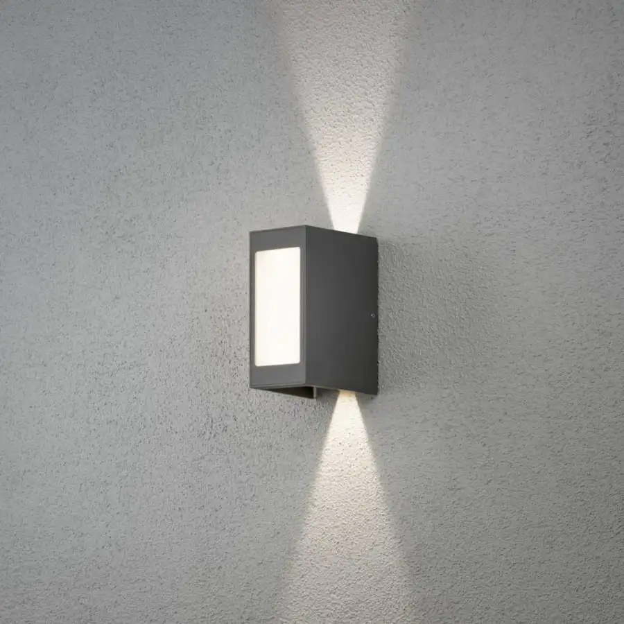 Konstsmide Cremona 7992-370 vägglampa utomhus, IP54, längd 13 cm, bredd 8 cm, höjd 17 cm, klarglas och opal akryl, aluminiumstomme, kroppsfärg mörkgrå, 720lm, fast LED 3x3W, 3000K, upp och ner ljus, justerbar ljusvinkel 0-90 mellan grader