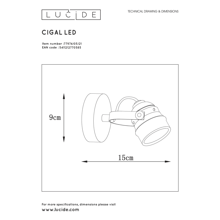 Think old movie theaters or a classic neighborhood pub. These Lucide Cigal spotlights give a real atmosphere to your living room. Cigal combines an antique appearance with a modern character. LED light sources spread warm, white 2700 kelvin light throughout the living room, bar or bedroom. In addition, Cigal is flexible: you can turn its metal spot about 360 degrees. With its red copper finish, Cigal is a stunning, compact lamp with a height of 15 centimeters.