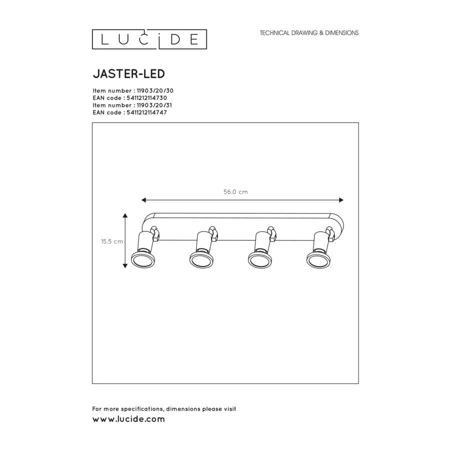 En riktig akrobat för sovrummet eller kökstaket. Dessa Jaster LED-spots i Lucide-serien är mycket flexibla. Du kan vända och luta de energisnåla spotarna runt 360 grader. Denna flexibla metalllampa lyser upp ett modernt kök eller matsal efter behov. Behöver du ljus? Jaster-LED till undsättning! Den svarta hjälten hoppar till din hjälp med varmvitt 2700K ljus. Denna lampa passar sömlöst in i miljön. Dess längd är ca 12 cm. Atmosfär och komfort garanteras.