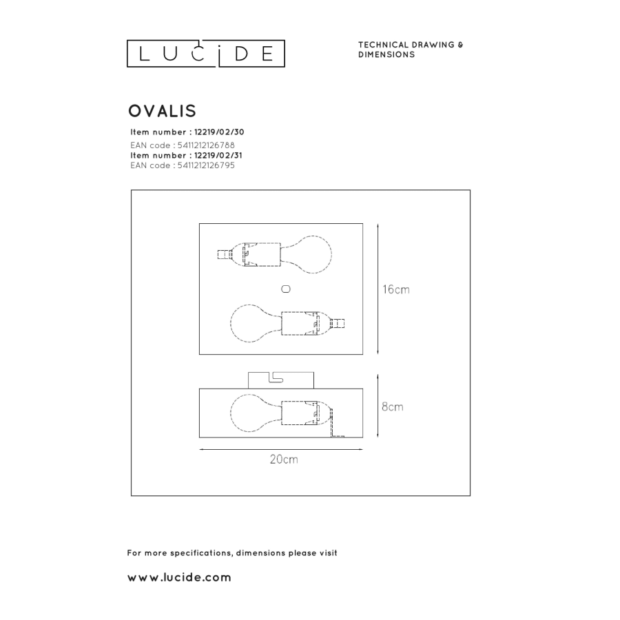 Vägglampan Lucide Ovalis är en vackert avslutad aluminiumlampa. Denna vägglampa används ofta av arkitekter och passar bäst till en vacker stuckaturvägg eller en grov murad vägg. Ovalis skapar en vacker timglasformad ljuseffekt. Med måtten 20 cm x 8,5 cm är Ovalis lätt att placera ovanpå mittfodralet. Ovalis är utrustad med två E14 lampsotag. Denna eleganta vägglampa tillför verkligt mervärde till alla utrymmen. Ovalis finns i svart och vitt.