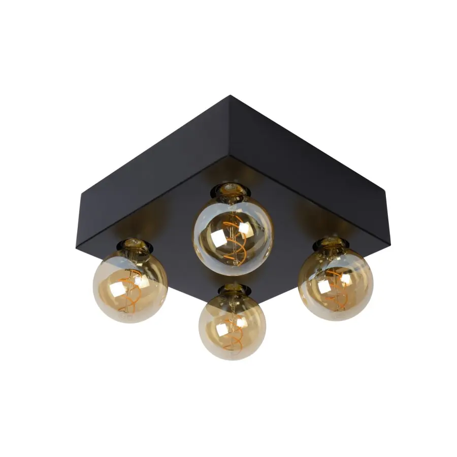 Thanks to its four light points, this industrial ceiling lamp brings cozy style to the interior. The ceiling lamp is called Surtus. The four light points are evenly distributed on the glossy mounting plate. Surtus has no use for frills: the materials and shapes speak for themselves. That’s why it’s worth using filament lamps. They have plenty of room to shine and give this ceiling light a great look.