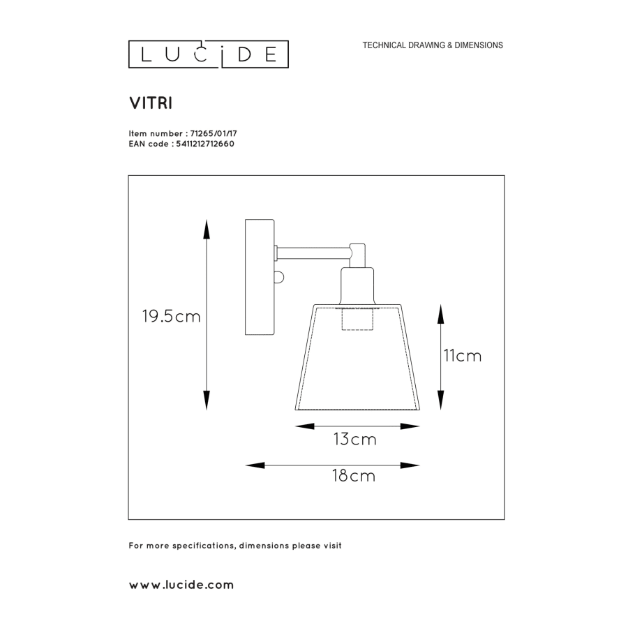 Dags för te. Denna Vitri vägglampa tar dig till en klassisk engelsk miljö. Tack vare denna autentiska lampa kan du njuta av den industriella revolutionens charm. Låt detta belysningselement visa sin roll i ditt vardagsrum. Den tidlösa kopparstammen stöder en glaskupol med en E14 lampfot. Du kan använda en (LED) ljuskälla för denna historiska lampa. Anslut denna kombination av robust metall och ömtåligt glas till en dimmer. Njut av ditt gröna te i rätt atmosfär.