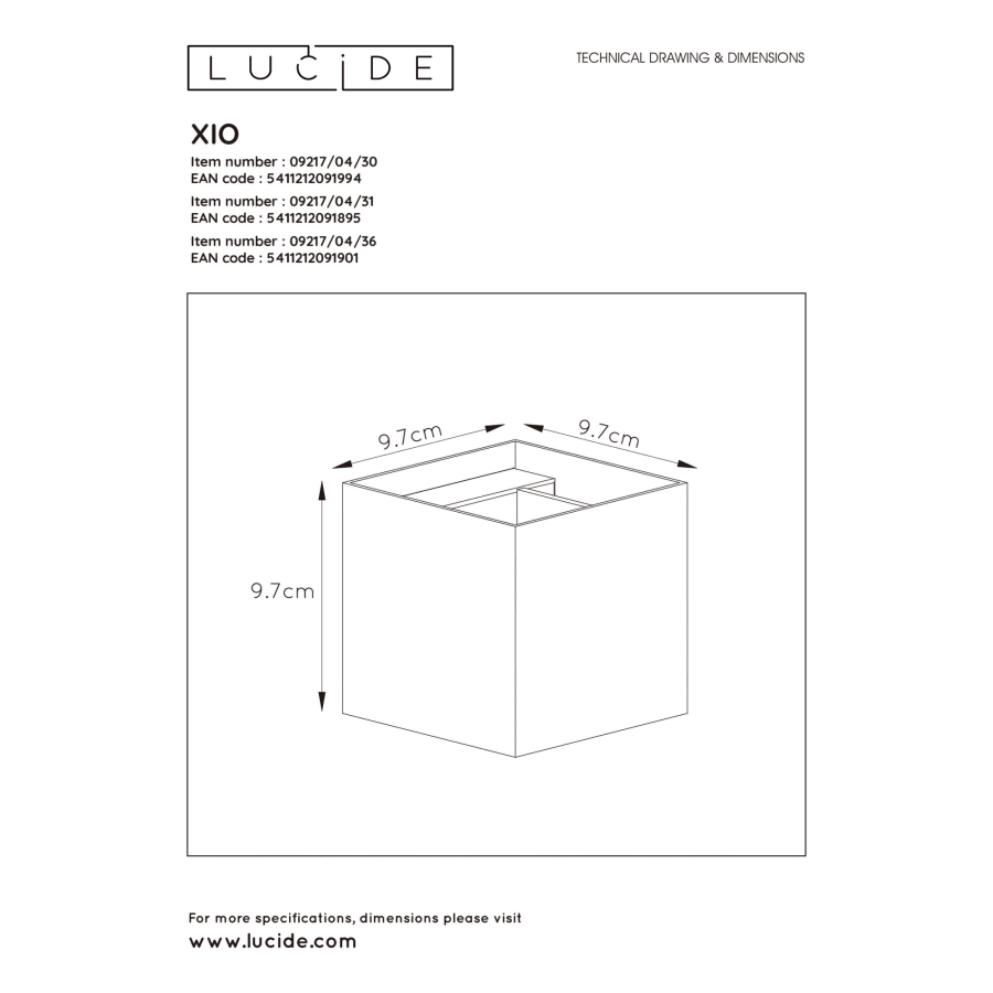 En svart, snygg, ljusfylld låda för din vägg. Denna Xio-kub är en modern vägglampa med sidor på 9,7 cm. Lampan med aluminiumram är lätt att installera och flytta. Liten, lätt men hållbar. Denna kompakta lampa är solid. Xio är kompatibel med LED-ljuskällor upp till 4 watt och har en ljusfärg på 2700 K. Dessa vägglampor med en G9 lampfot lyser upp ditt sovrum och ger en klar och varm vy.