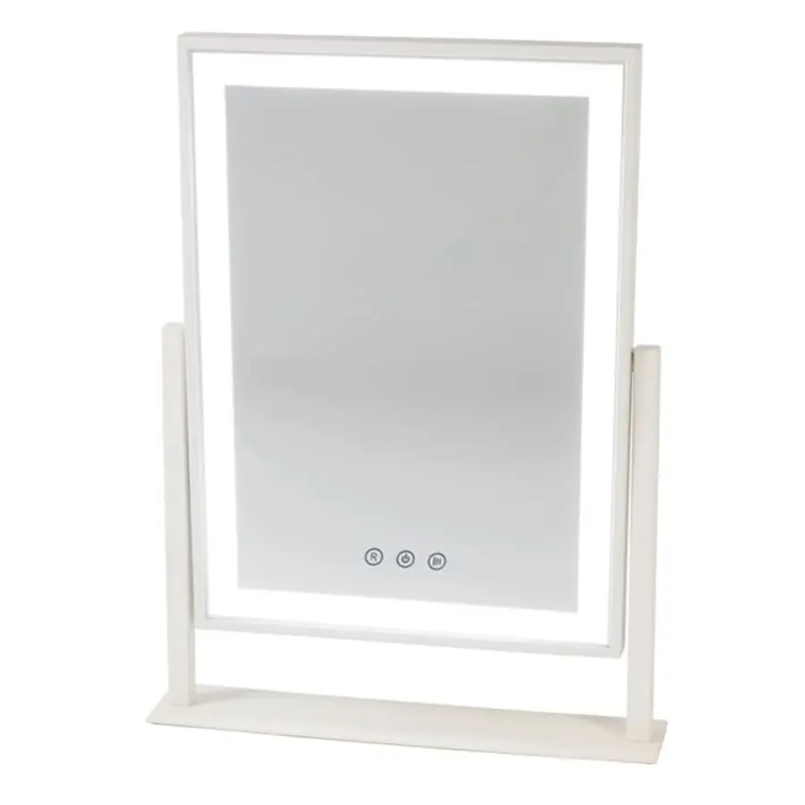 Stylish metal framed make-up mirror with led light strip embedded under the glass. Light color temperature and brightness can be adjusted from the touch buttons on the mirror. The adjustments allow you to find the perfect ligth for each situation. You can tilt the mirror to the desired angle. Non-slip pad at the bottom of the stand helps to keep the mirror steadily on its place.