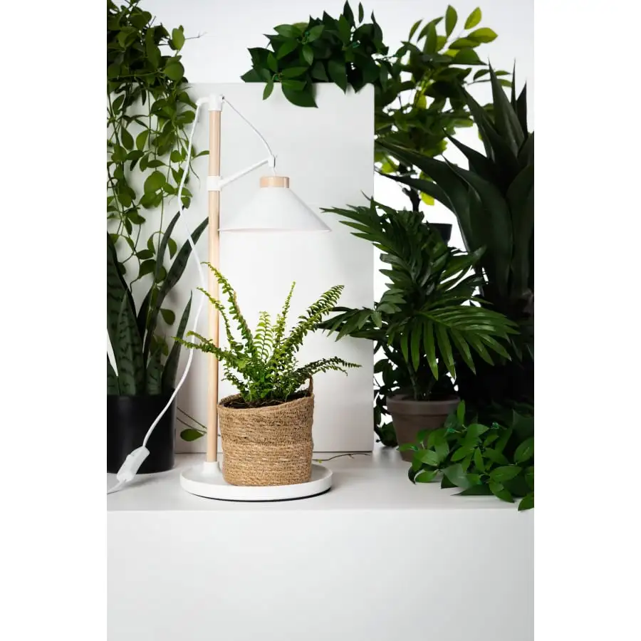 Plant light gives potted plants the light they need during the dark season. Also suitable for placement where there is not enough sunlight for the plant. The plant light has a pleasant white light that promotes plant growth and is suitable for home use due to its shade. The lamp has a built-in led lamp and timer. The lit lamp lights up for 16 hours and goes out for 8 hours.The main materials of the lamp are wood and plastic.