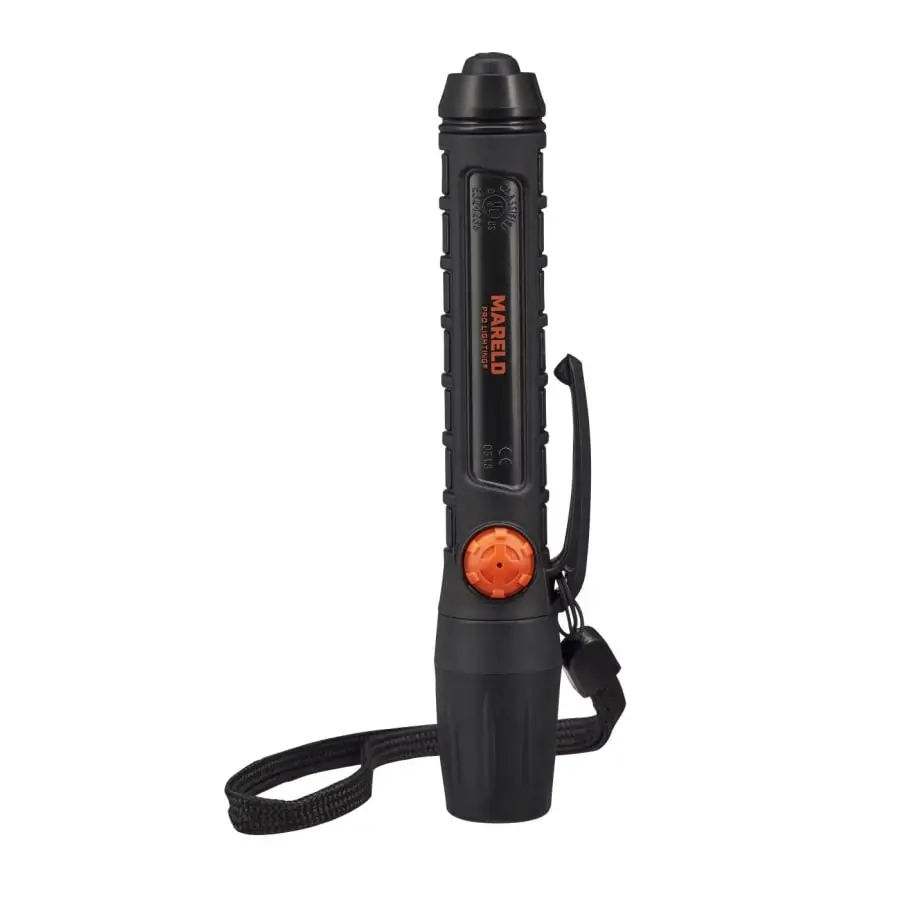 Small and handy penlight, approved for Atex/EX environments and zone 0. Approved for Energizer E91 and Duracell MN1500 batteries.