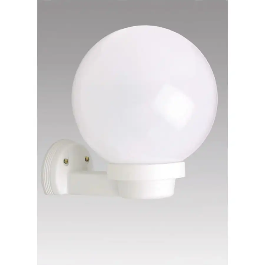 A timeless and durable outdoor wall lamp with a plastic frame. The dome of the lamp is smoky gray or opal white acrylic.