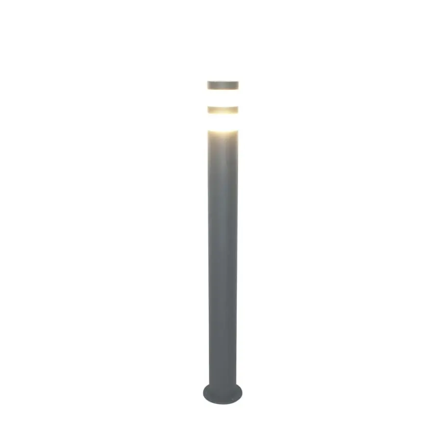 Bollard lamp with a steel frame for lighting the yard and walkways. The lamp’s glare shield is white frosted polycarbonate.