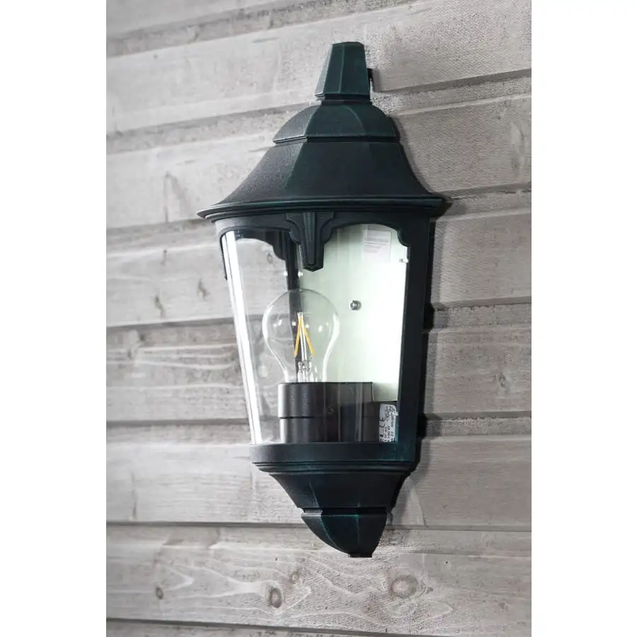 Klassisk modell, högkvalitativ utomhusvägglampa. Lampans kropp är gjuten lättmetall, som avslutas med tre lager färg.