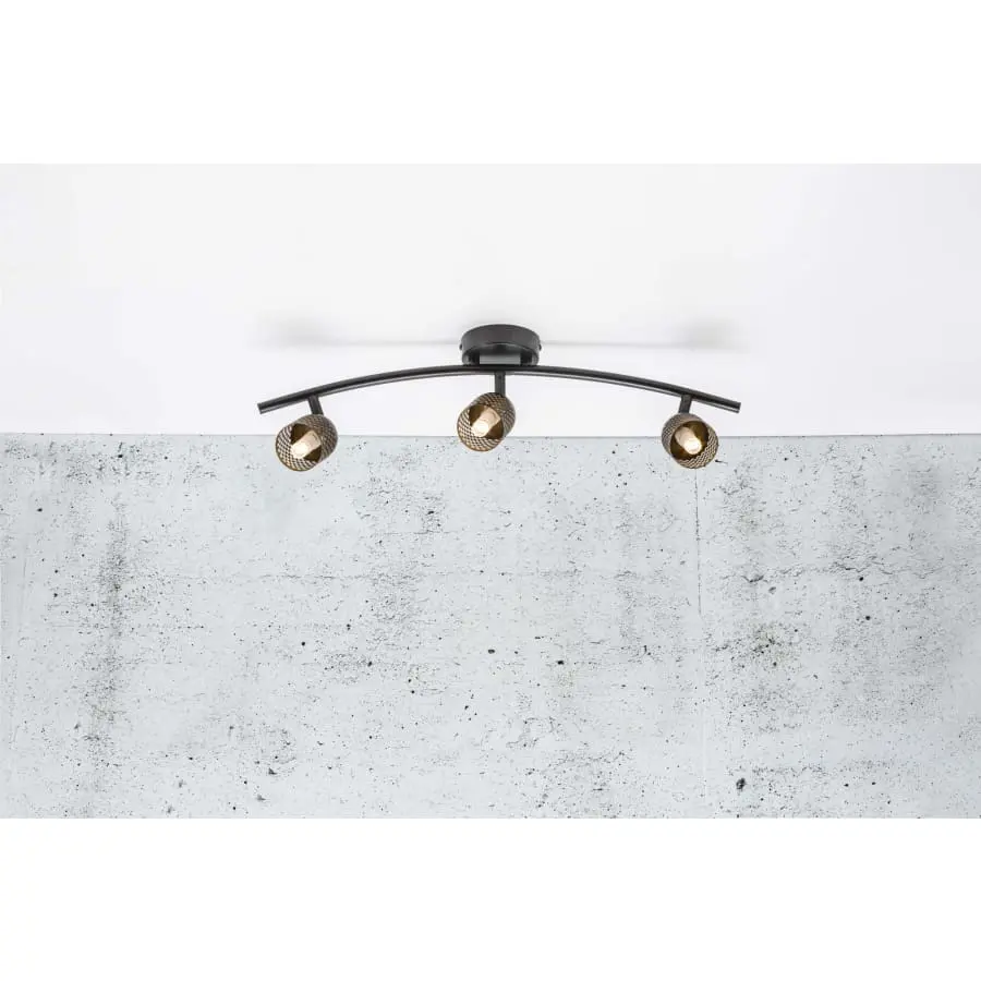 Snygg 3-delad mattsvart spotlight. Skärmarnas hålmönster skapar ett roligt spel av ljus och skugga. Varje spot vrider sig 90°, så det är lätt att rikta ljuset efter behov.