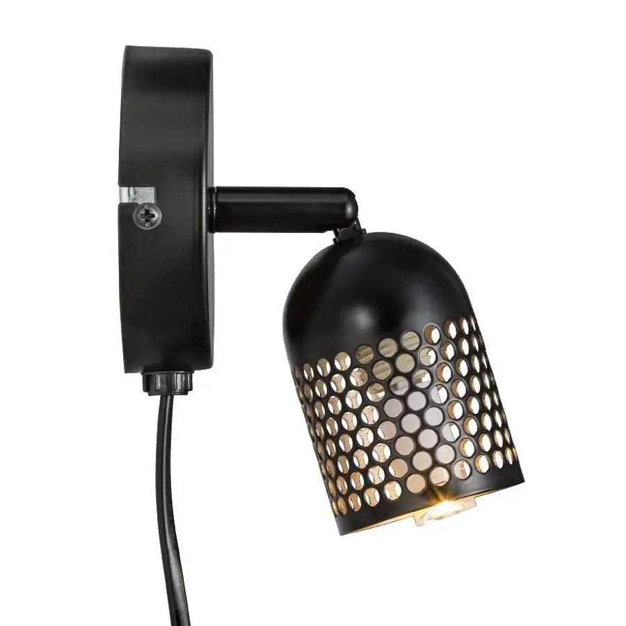 En snygg mattsvart vägglampa, hålmönstret på skärmen skapar ett roligt spel av ljus och skugga. Skärmen kan lutas 90°, så det är lätt att justera ljusets riktning.