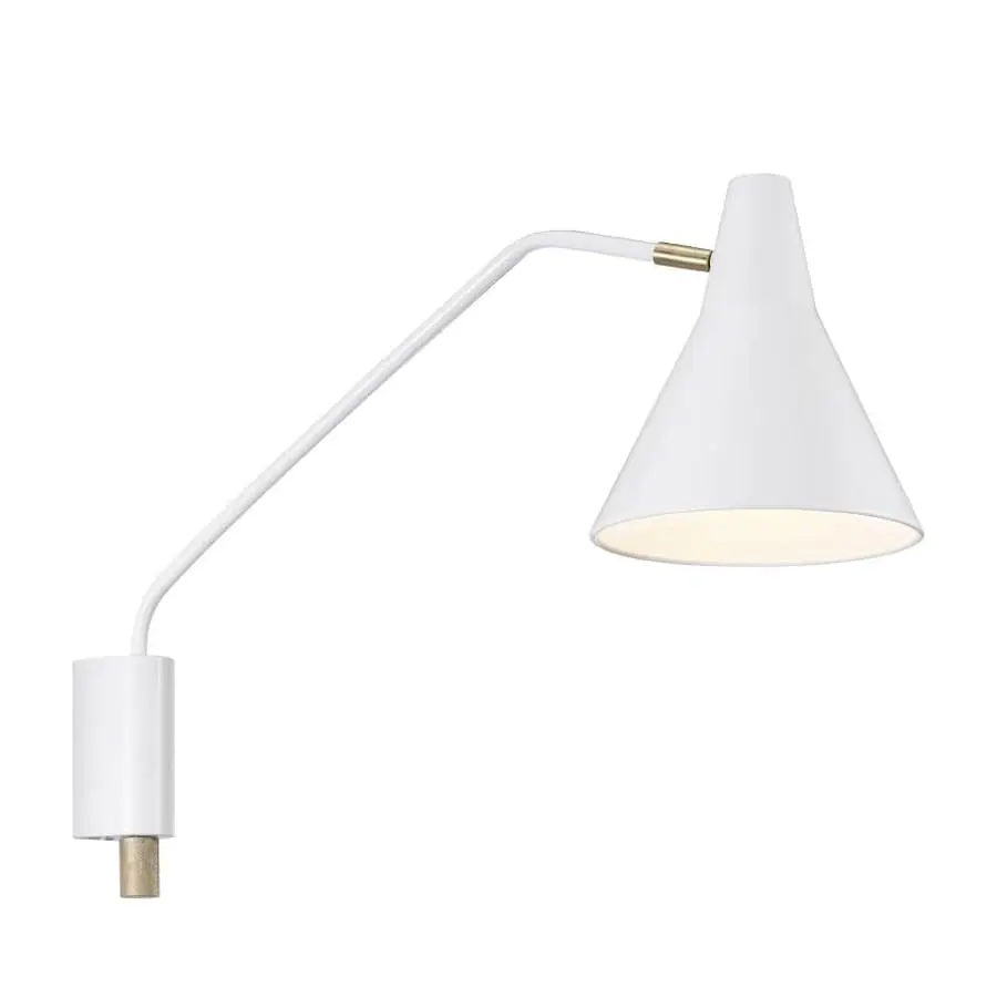 En vacker och modern vägglampa med svängbar arm. Skärmen är också justerbar, så att du kan rikta ljuset mot det mål du vill ha. Den opalvita bländningsskärmen reflekterar ljuset vackert igenom. I den nedre delen av lampan måste du vrida dimmern.