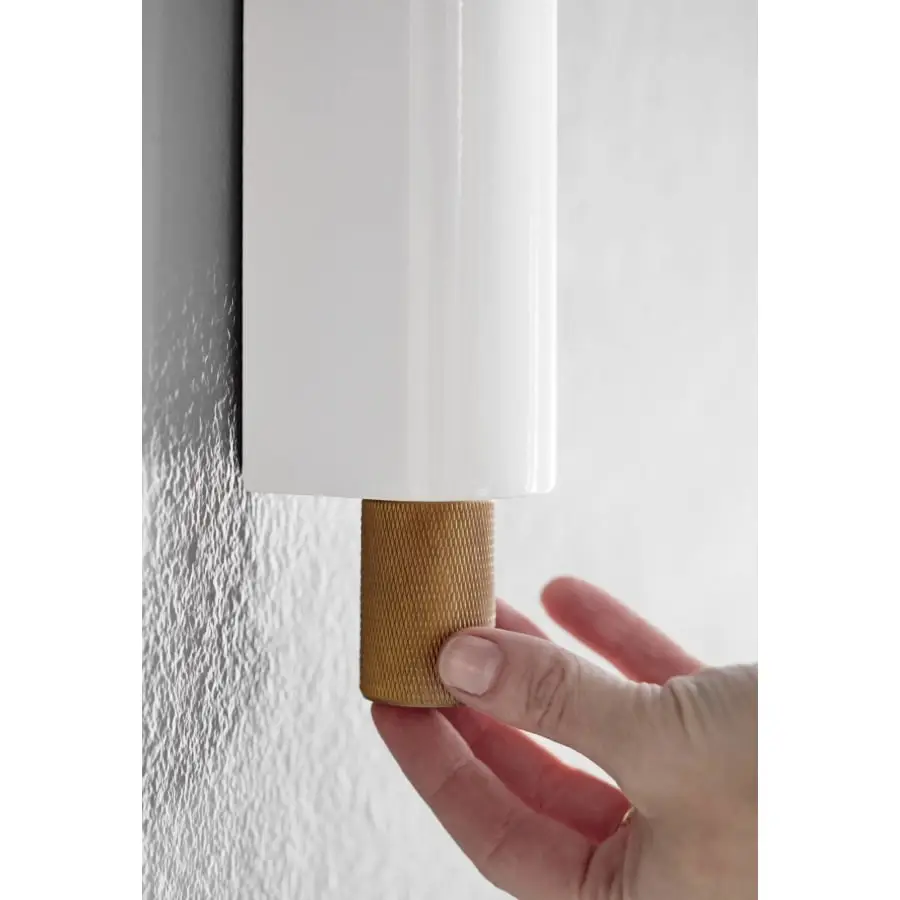A beautiful and modern wall lamp with a swiveling arm. The shade is also adjustable, so you can direct the light to the target you want. The opal white glare shield reflects the light through beautifully. In the lower part of the lamp, you need to twist the dimmer.