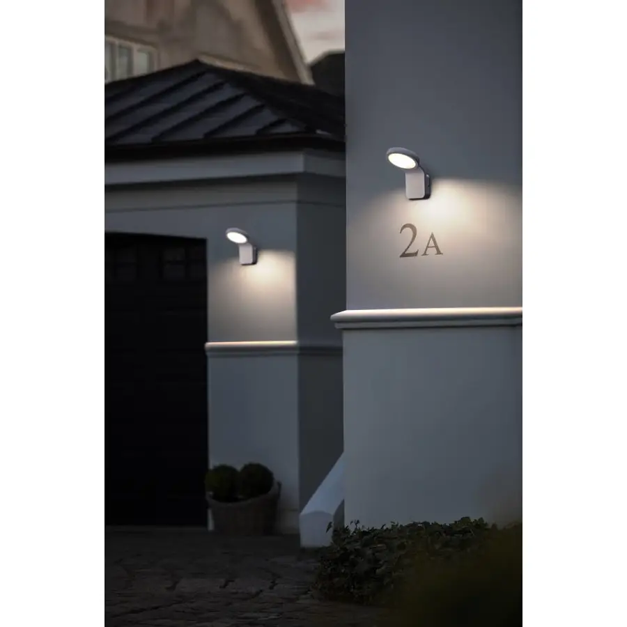 Vägglampa i aluminium med en opalvit bländskydd. Det är möjligt att kedja lampan. Lampan är 20 cm hög, 13,5 cm bred och 18 cm djup.