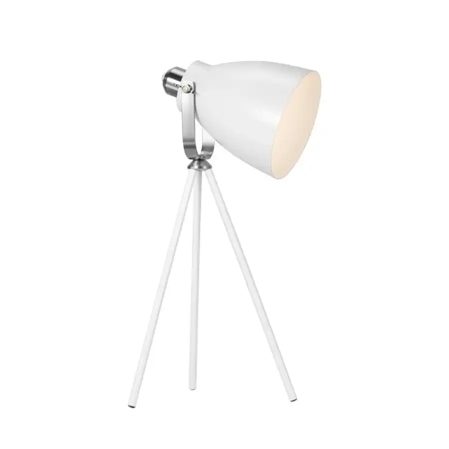 A metal three-legged table lamp with a height of 51.5 cm and a shade diameter of 17 cm.