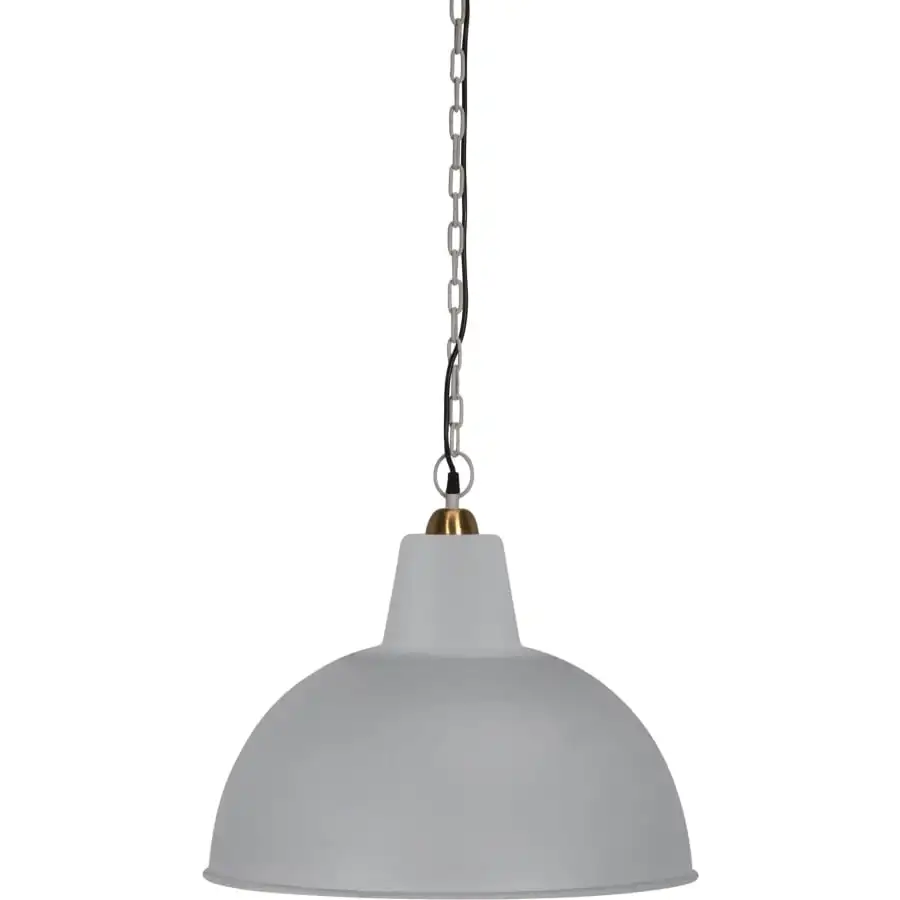Taklampa i metall med mässingsdekoration. Nyansen är grå till färgen både på utsidan och insidan.
