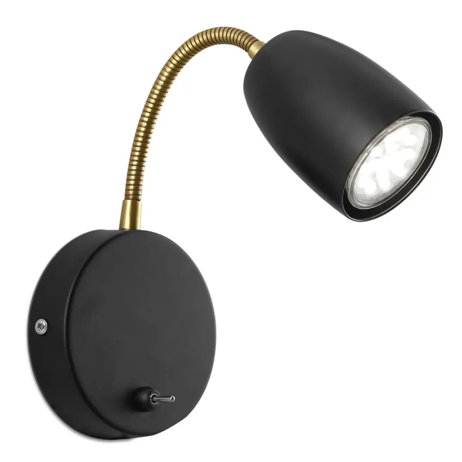Förtjusande vägglampa med flexibel mässingsarm. Rikta ljuset enligt behov. Ypperlig läslampa för sovrummet eller kontoret.