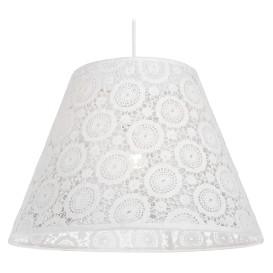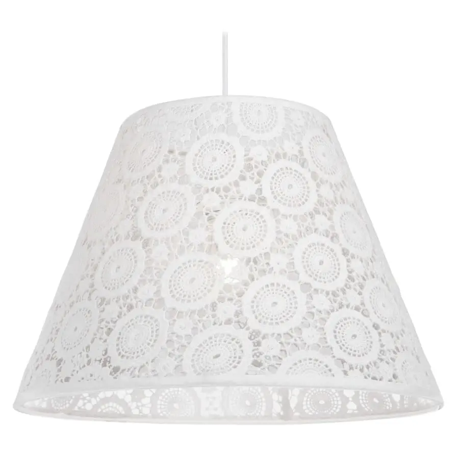 Hänglampa med vacker vit spetsbeklädnad. Utsökt lampa för sovrumstaket. Enkel montering med krokupphängning och lampkontakt.