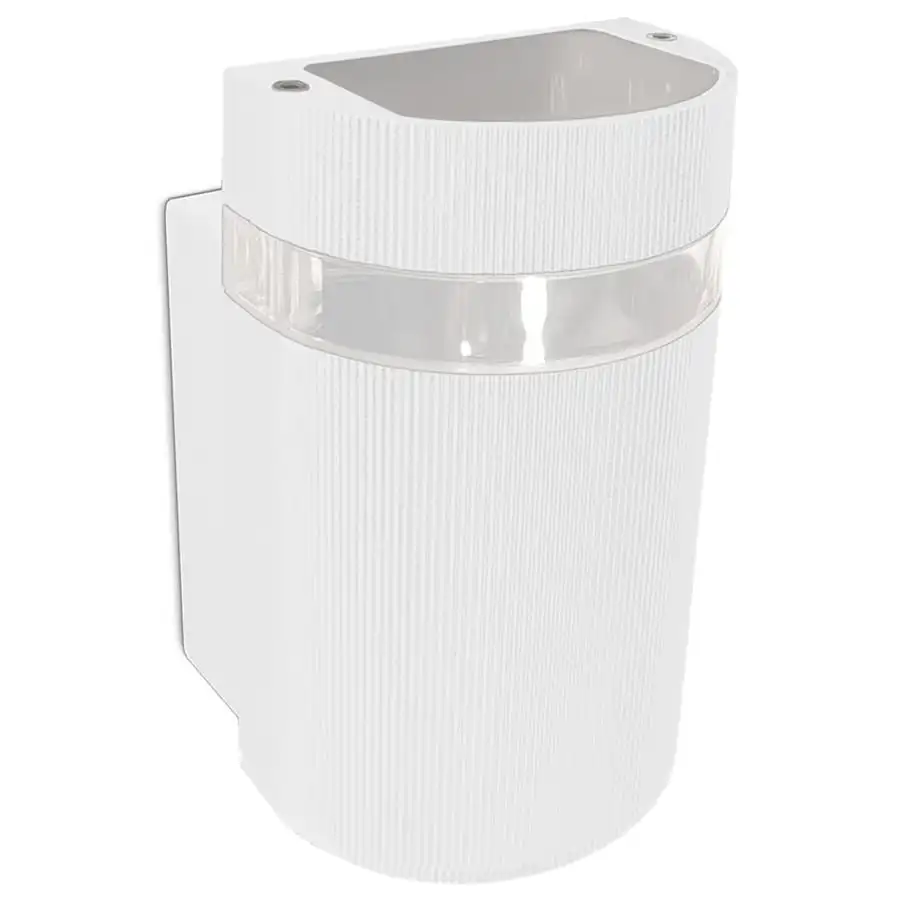 Oiva ytterväggslampan ger efterlängtad belysning till trädgården. Den runda formen och räflade ytan får lampan att smälta in i husväggen på ett elegant sätt. Ljusskenet strömmar ut både ovanifrån och från sidan av lampan, vilket gör det behagligare och tryggare att röra sig ute. IP44 klassad