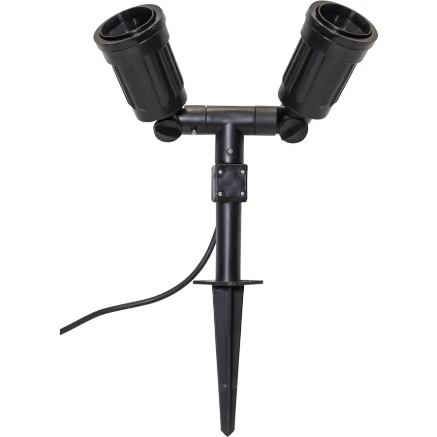 2-stifts markspetslampa för belysning av till exempel träd och planteringsytor. Lampan har två E27 socklar. Ljuskällor ingår inte i paketet.