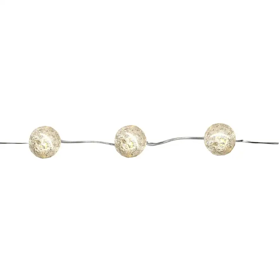 Star battery light set ”marble balls” with a thin string cord. A light chain equipped with a timer, lights up for 6 hours and turns off automatically, lights up again after 18 hours and lights up for 6 hours, etc. Can also be turned off completely if necessary.