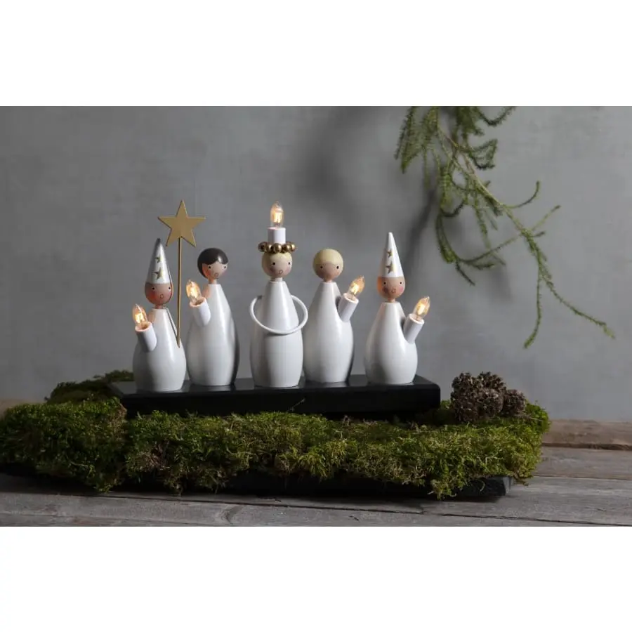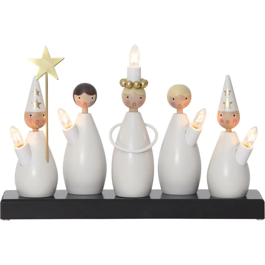 A beautiful Lucia-themed candlestick with five figures. For indoor use.