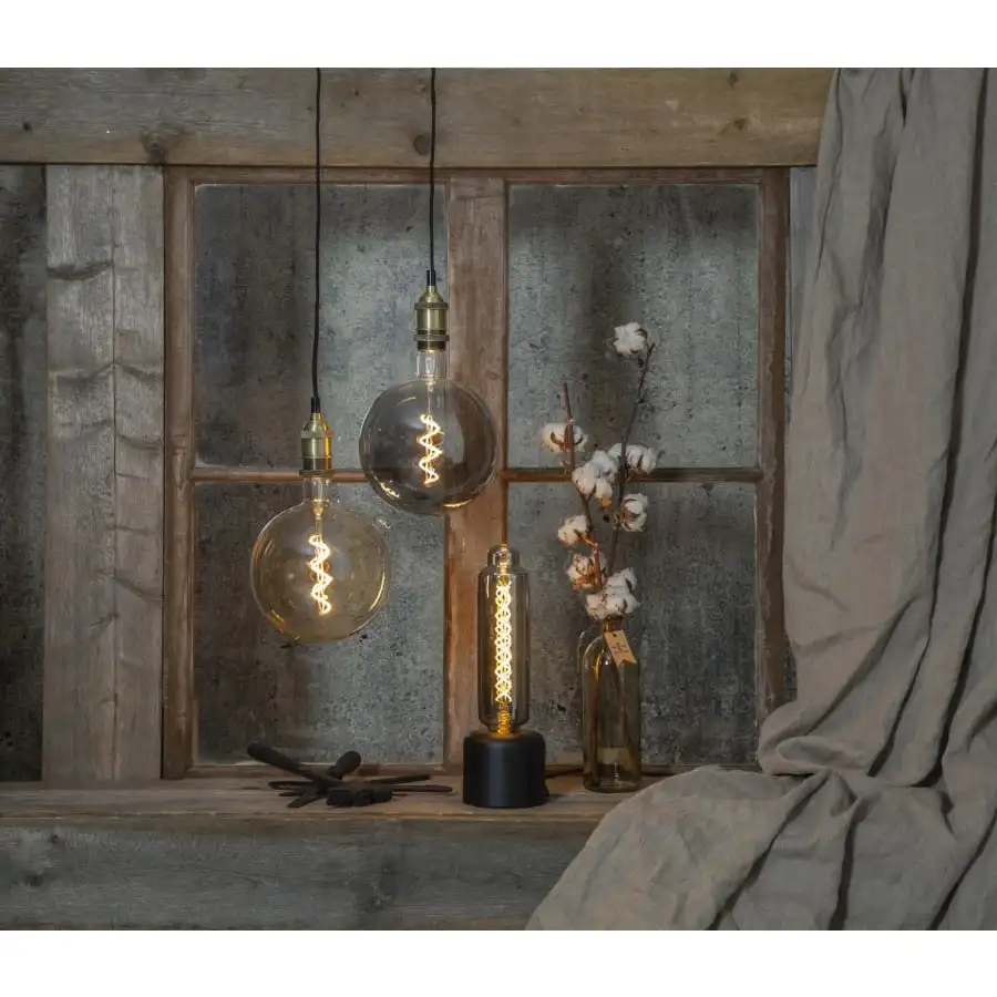 Dimmable LED lamp with smoke gray glass.
