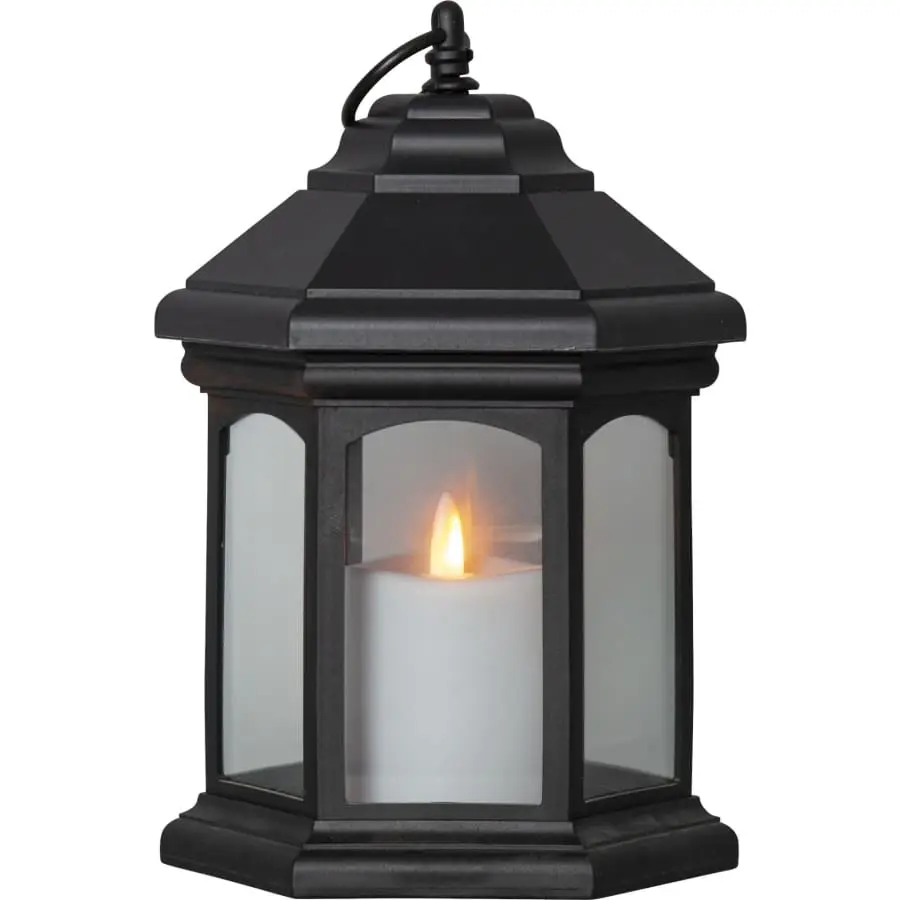 En lykta av plast med ett LED-ljus inuti. Lyktan kan användas både inomhus och utomhus och lämpar sig som trädgårdsdekoration eller på en älskads grav.