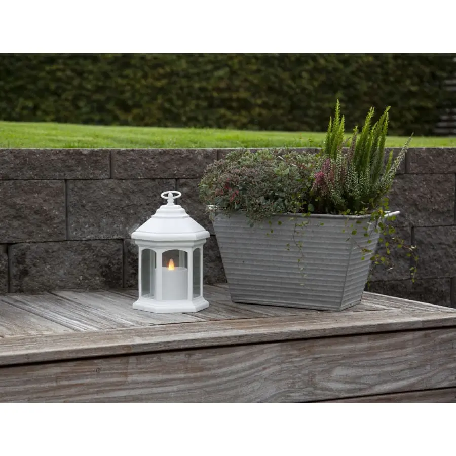 En lykta av plast med ett LED-ljus inuti. Lyktan kan användas både inomhus och utomhus och lämpar sig som trädgårdsdekoration eller på en älskads grav.