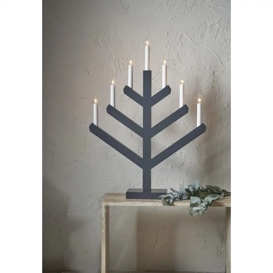 En vacker elektrisk ljusstake i trä som skapar en härlig julstämning hemma. För inomhusbruk.