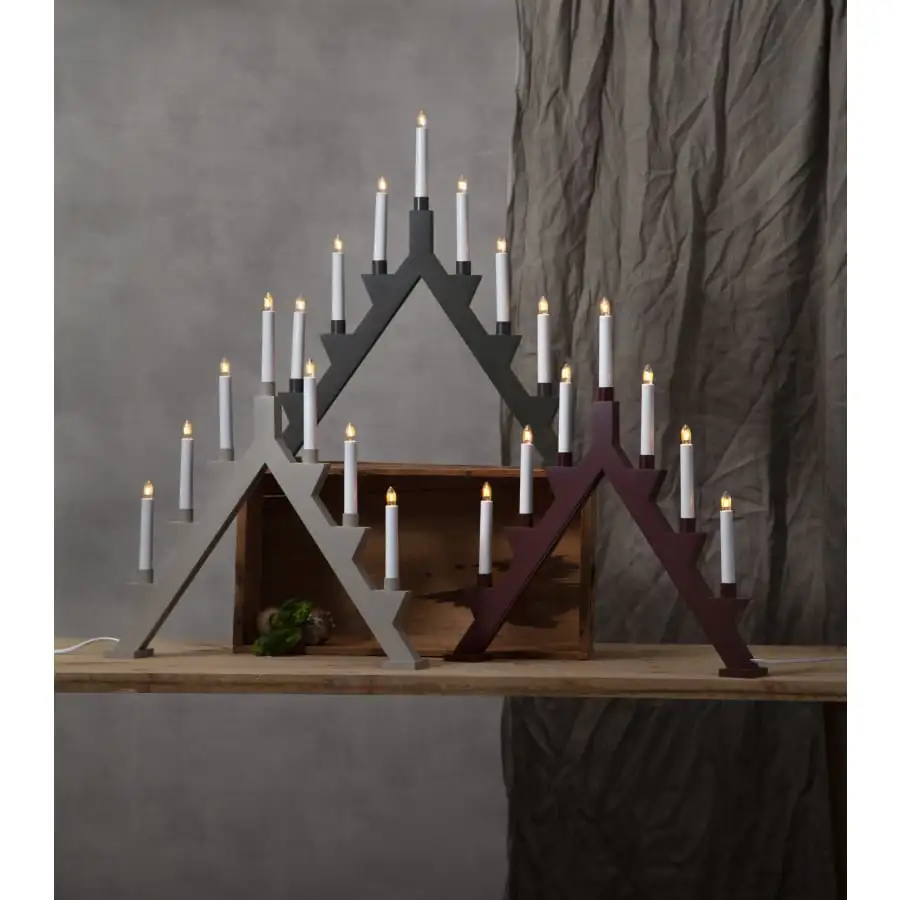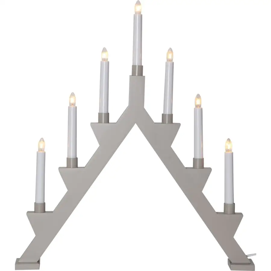En 7-grenad elektrisk ljusstake i trä med en höjd på 53 cm, en bredd på 47 cm och ett djup på 7 cm. Ljuset har utbytbara glödlampor med E10-sockel. Nätsladden med strömbrytare är 180 cm lång.